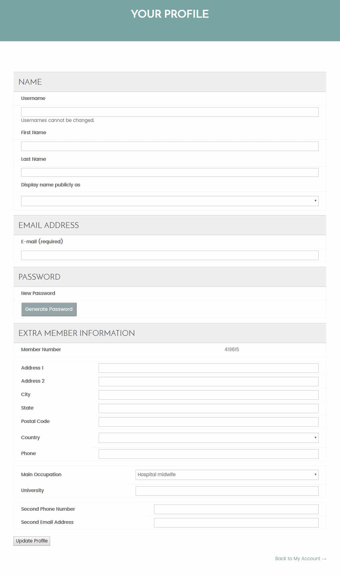 Fill in your desired password and click ‘update profile’ at the bottom of the page.